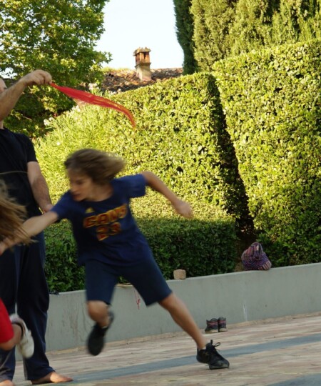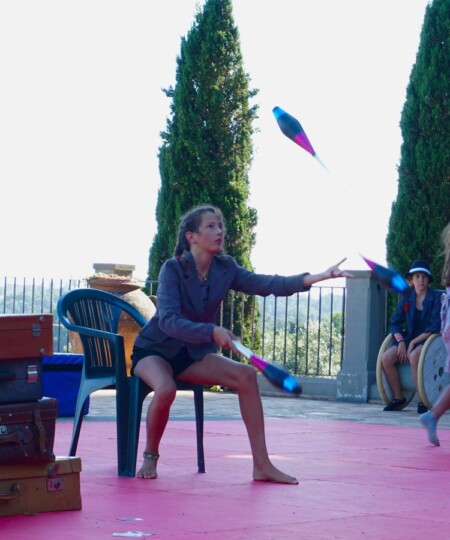 Il campo, alla sua nona edizione, si rinnova anche quest’anno con nuovi giochi e discipline. I partecipanti, massimo 20, sono seguiti da due operatori collaudati, un attore/giocoliere e una educatrice e acrobata. Ogni pomeriggio appuntamento col tuffo nella piscina in pietra naturale per rinfrescarsi e rigenerarsi tra un’attività e l’altra.