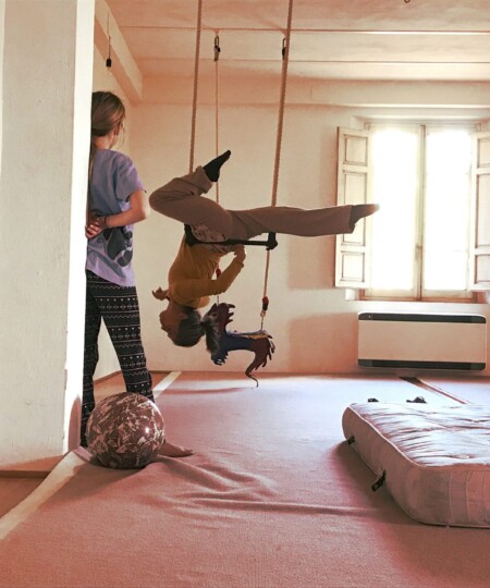 All’interno del parco i grandi alberi offriranno la loro ombra e le loro braccia alle discipline di acrobatica aerea, la spaziosa terrazza panoramica sarà utilizzata come scenario per diverse attività: l’equilibrismo, i monocicli, il rullo, la sfera, i trampoli e, sul filo sospeso, passeggeremo ad un metro da terra. La piscina in pietra naturale con acqua salata allevierà la calura estiva. Le intense giornate si concluderanno in allegria e condivisione intorno al fuoco o mangiando la pizza cotta nel forno a legna.