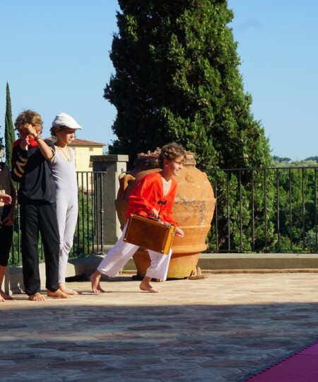 Nella costruzione di coreografie i ragazzi trovano un’opportunità eccezionale per scoprire e sperimentare le proprie attitudini attraverso l’espressione fisica e di interazione sociale apportata dal teatro. La compagnia, muovendosi tra gli spazi interni ed esterni della Villa, tra sale attrezzate, parchi, giardini e passaggi segreti, si ritroverà insieme ogni giorno in momenti ludici e giochi di gruppo e di società.