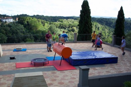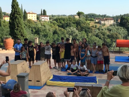 La particolarità di questo campo è la possibilità di usufruire sia di una grande sala, che viene appositamente allestita per gli allenamenti con ostacoli e attrezzi, che degli spazi esterni di una villa storica, tra bosco, terrazze panoramiche e piscina. Nei momenti di relax i ragazzi hanno a disposizione vari giochi, tra cui biliardino e ping-pong. E’ prevista anche un’uscita serale dove i ragazzi si cimenteranno nell’ambiente urbano del borgo di San Miniato.