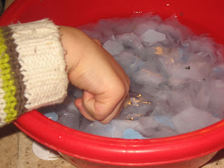 Abbiamo cominciato tagliuzzando la carta da reciclare in piccoli pezzetti, che poi si lasciano macerare in tanta acqua per uno/due giorni