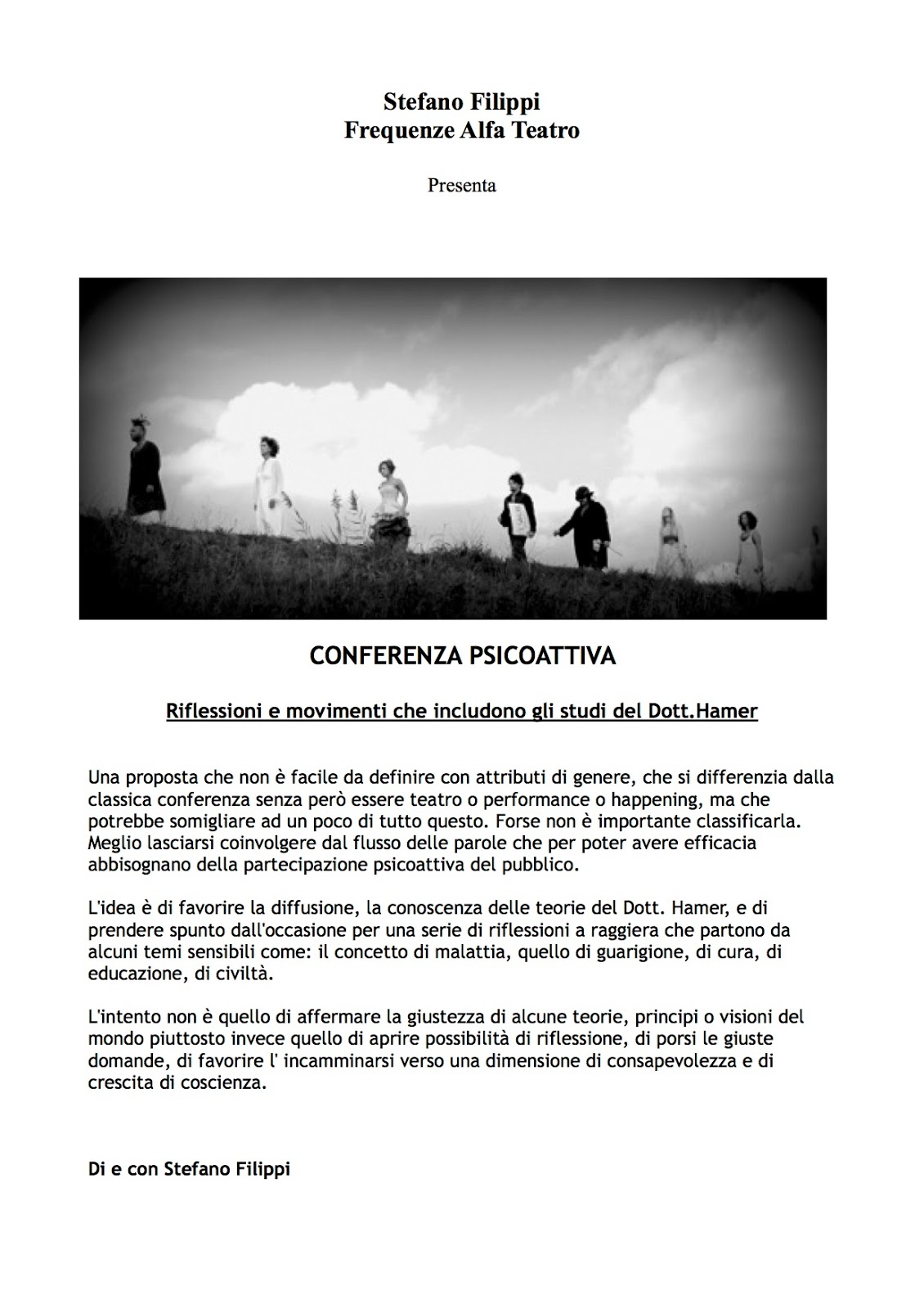 In occasione dell’ultimo appuntamento il corso si aprira’ a tutti quelli che vorranno partecipare alla discussione finale e assistere alla performance di Stefano Filippi, sul tema della Nuova Medicina: