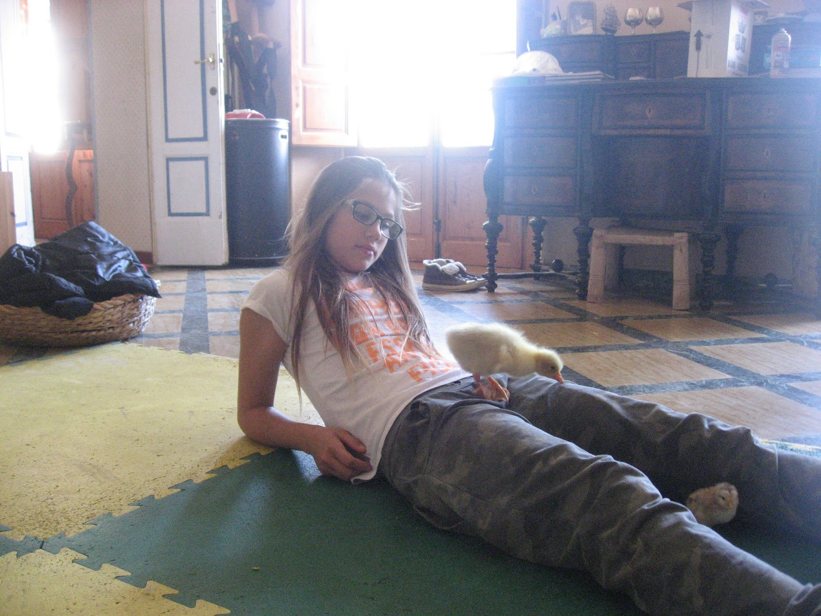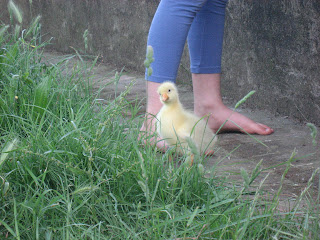 Quando all’incirca un mese fa è arrivato quel grande uovo tutto bianco non avevamo molte speranze di vederlo schiudere perchè, a differenza di altre specie, l’uovo d’oca è più difficile da far nascere in incubatrice e invece, verso lo scadere del termine, ecco che, accostando l’uovo all’orecchio…..zitti zitti……si, è proprio lei che pian piano comincia a pigolare e battere per uscire….L’oca ha un guscio molto duro, perciò i bambini sapevano che, quando sarebbe riuscita a fare il primo buchino, poi avrebbe avuto bisogno del loro aiuto per uscire…..e infatti pian pianino, un pezzettino per volta eccola libera dal guscio ormai troppo stretto, tutta bagnata e immobile e indifesa prorpio come lo sono i cuccioli d’uomo quando vengono al mondo….